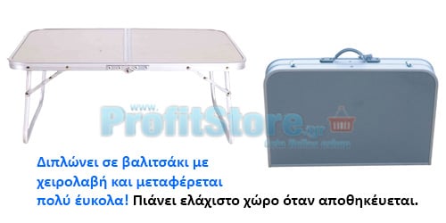 Τραπεζάκι Πτυσσόμενο Αλουμινίου 60 x 40 που διπλώνει σε Βαλιτσάκι