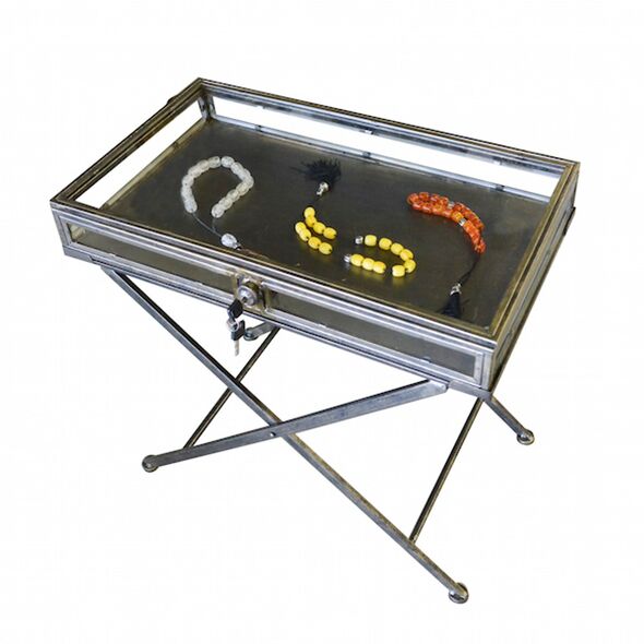 Ενα καταπληκτικο τραπέζι για να διακοσμηδσετε τον χωρο σας.Με εμφάνιση παλαιωμένου μέταλλου και βτρίνα για να εκθέσετε τα αγαπημένα σας αντικείμενα