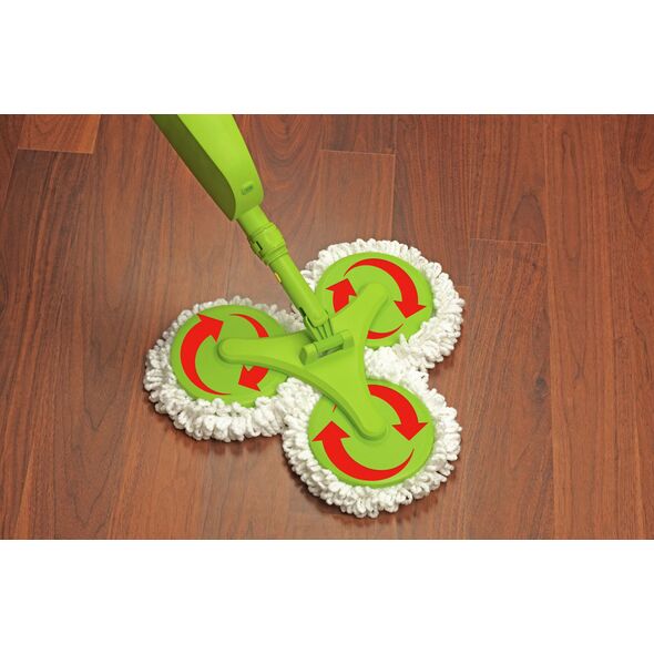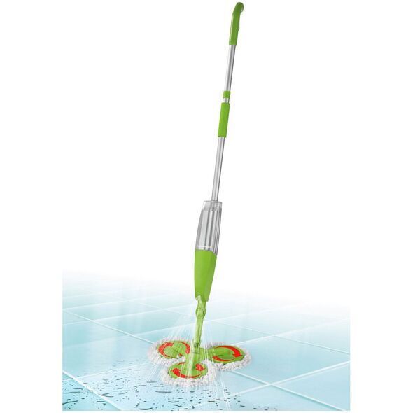 Σπρέι σφουγγαρίστρα - σκούπα, με Microfiber ( μικροϊνες ) και ενσωματωμένο δοχείο ψεκασμού. Διαθέτει 3 περιστρεφόμενες 360 ° κεφαλές με ανεξάρτητα πανάκια για να καθαρίζετε κάθε γωνία, έπιπλο και κάθε σημείο του σπιτιού!