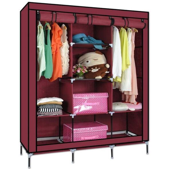 Εύκολα συναρμολογούμενη υφασμάτινη ντουλάπα με μεταλλικό σκελετό, σχεδιασμένη να προστατεύει τα ρούχα και τα παπούτσια σας από τη σκόνη και τις βρομιές. Τοποθετείται σε υπόγεια, παιδικά δωμάτια, κρεβατοκάμαρες, σοφίτες κτλ.