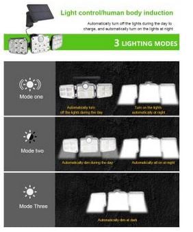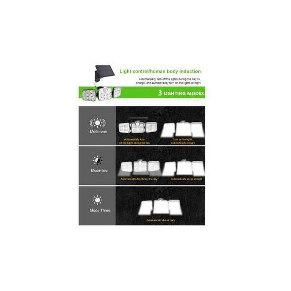 Τριπλός Ηλιακός Προβολέας - Φωτιστικό 138 LED SMD με Ανιχνευτή Κίνησης, Φωτοκύτταρο & Τηλεχειρισμό