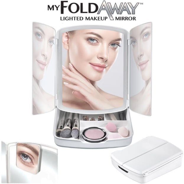 Τριπλός Καθρέφτης με Φωτισμό LED, Θήκη Μακιγιάζ & Έξτρα Μίνι Μεγεθυντικό Καθρεφτάκι - FoldAway Lighted Makeup Mirror
