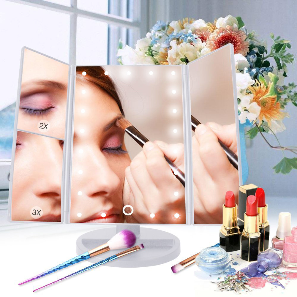 Τριπλός Καθρέφτης με Φωτισμό & Μεγέθυνση Ομορφιάς - Μακιγιάζ / Makeup 22 LED