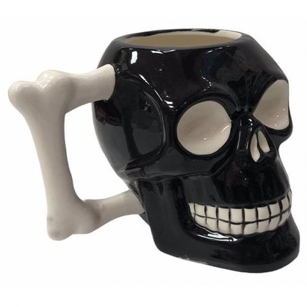 Μια μοναδική πανέμορφη 3D κούπα με μαύρο κρανίο-skull και χερούλι κόκκαλο