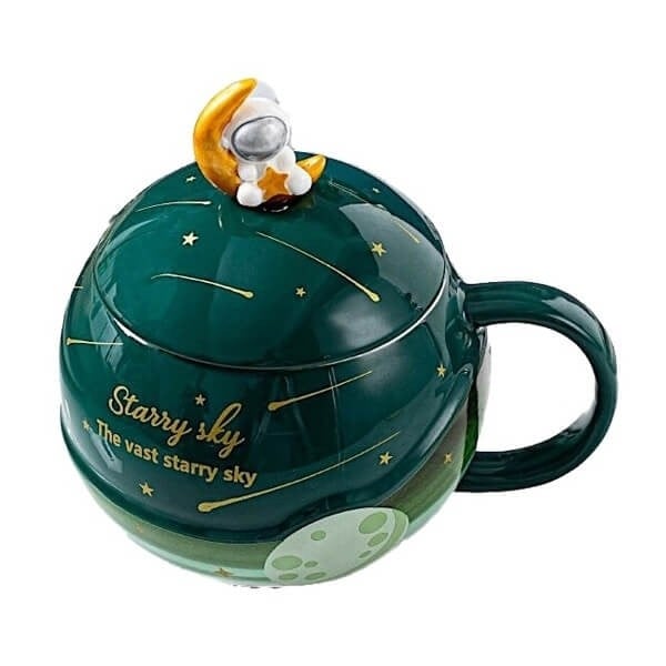 Τρισδιάστατη Κεραμική Κούπα "Starry Sky" 350ml με Καπάκι & Κουταλάκι σε Διάφορα Χρώματα