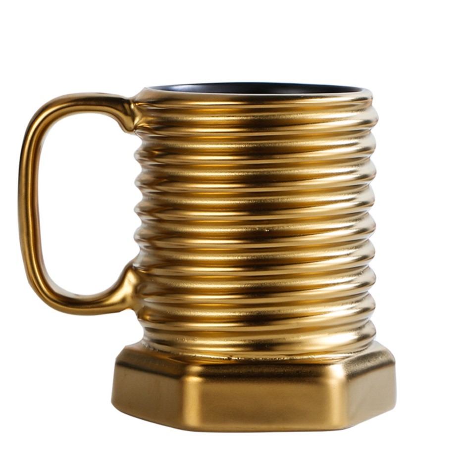 Τρισδιάστατη Κεραμική Κούπα Βίδα 400ml για Καφέ & Τσάι - Χρυσό