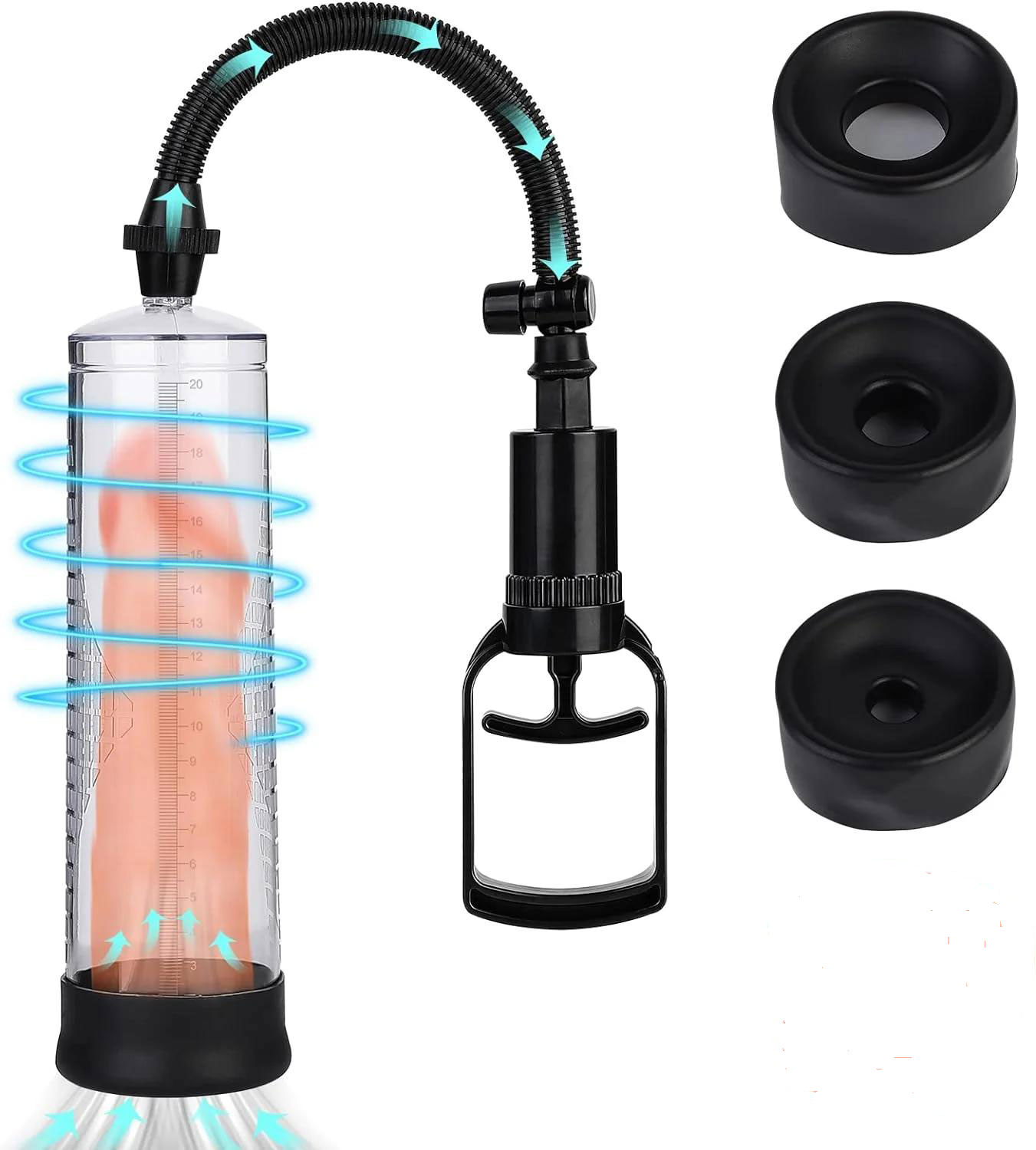 Τρόμπα Επιμήκυνσης Πέους - Αεραντλία Αναρρόφησης με Σκανδάλη & 4 Ανταλλακτικά Στόμια