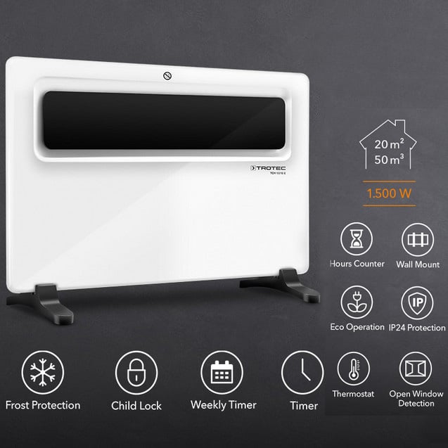 Trotec Επιτοίχιος & Επιδαπέδιος Θερμοπομπός 1500W με LCD Οθόνη, Ρυθμιζόμενο Θερμοστάτη & Χρονοδιακόπτη