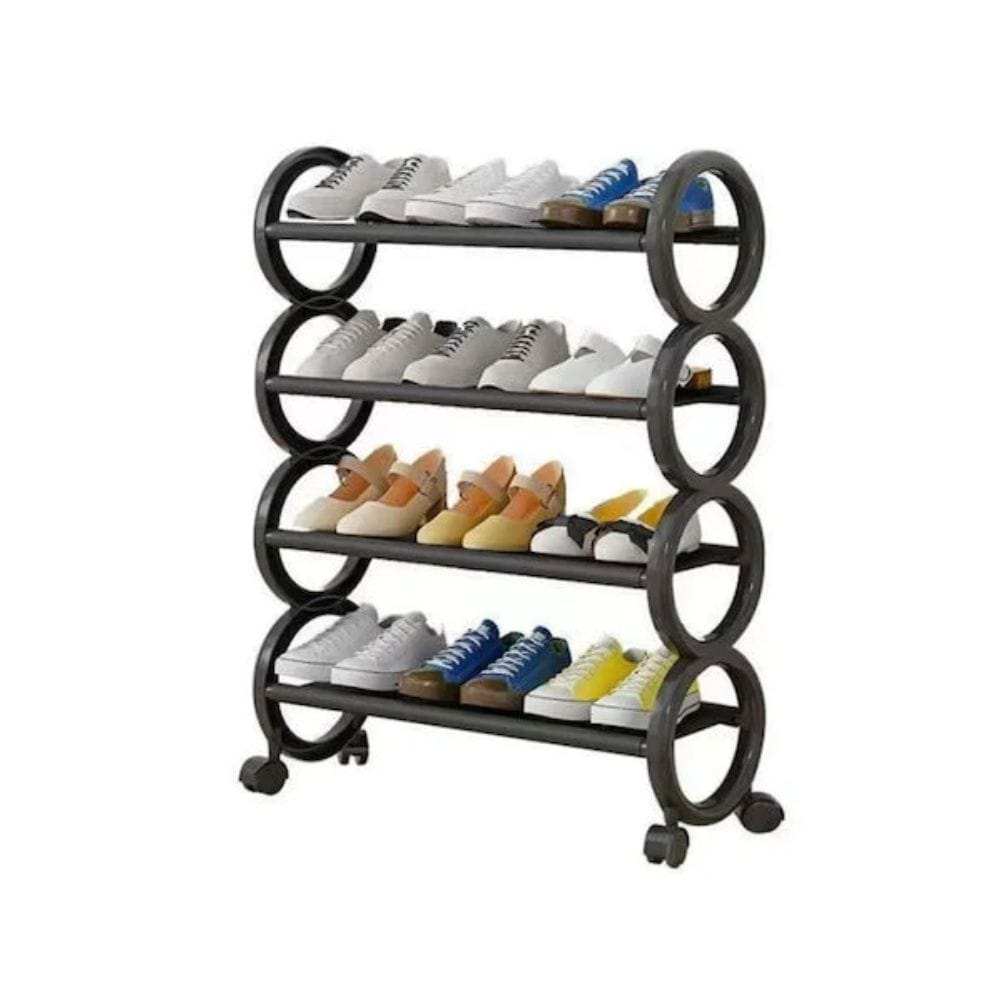 Τροχηλάτη Παπουτσοθήκη 4 Επιπέδων από Μέταλλο και Πλαστικό - 57cm Μαύρη