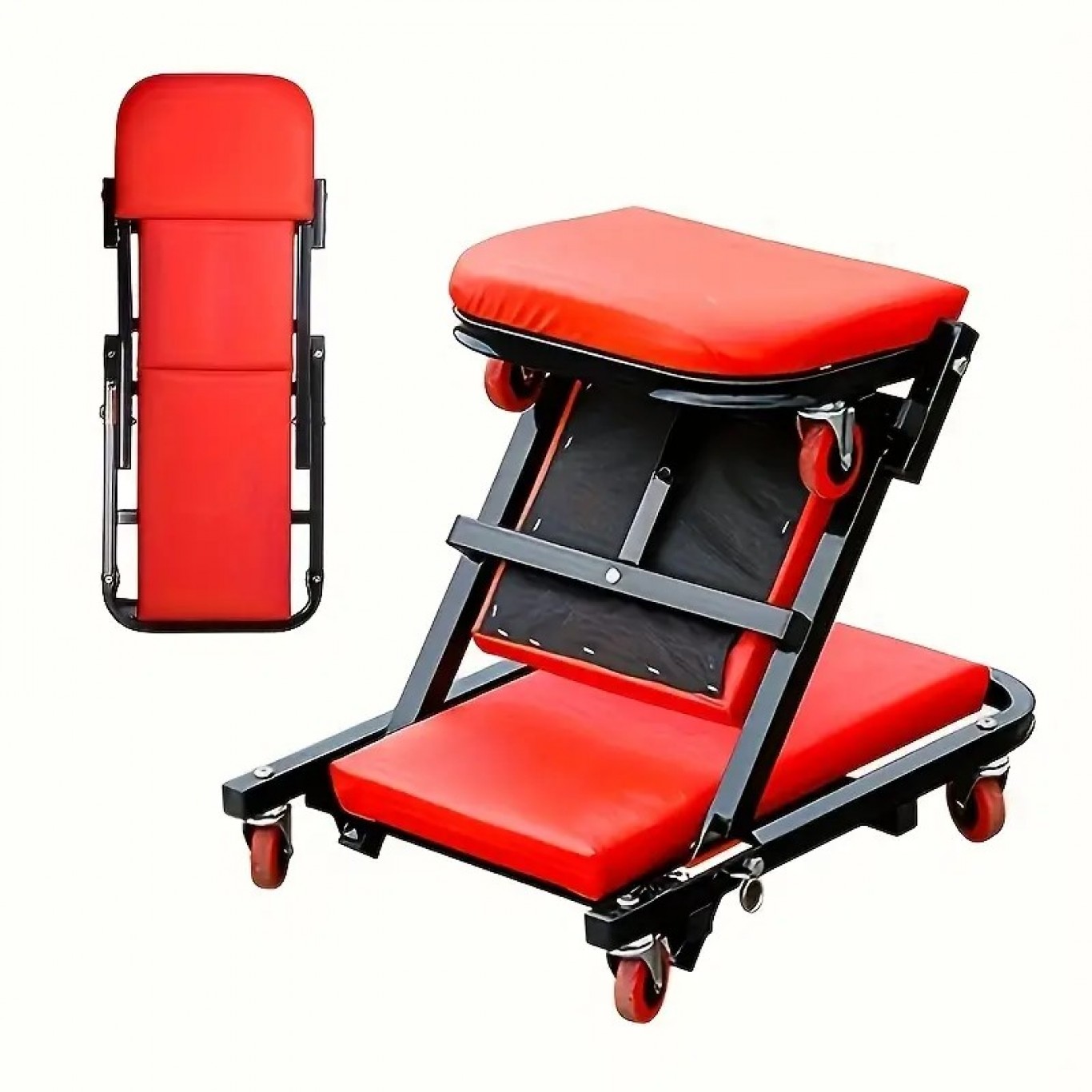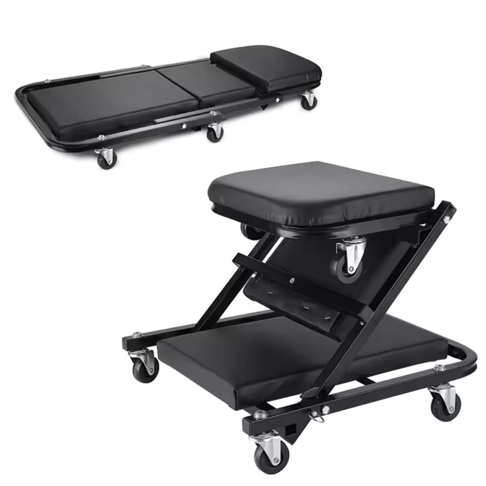 Τροχήλατο Αναδιπλούμενο Σκαμπό - Ξαπλώστρα Εργασίας 2 σε 1 με Ροδάκια 360°