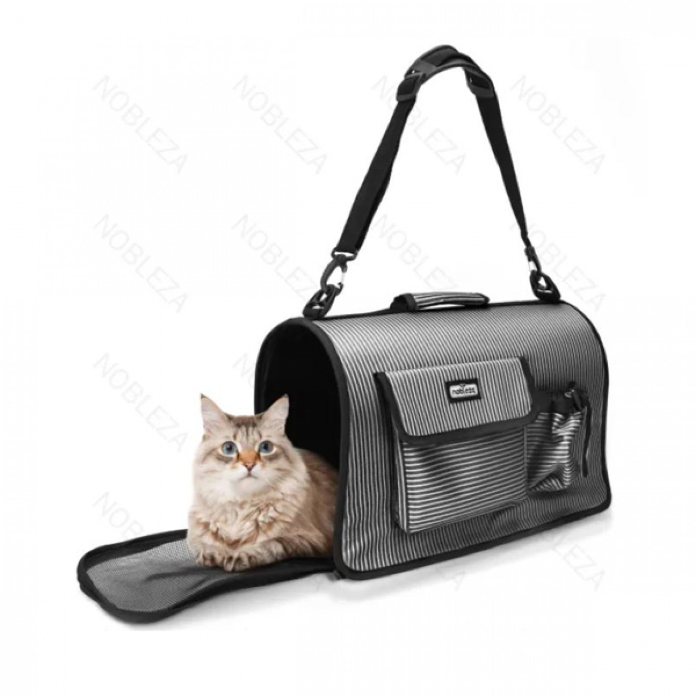 Τσάντα Μεταφοράς Κατοικιδίων Σκύλου & Γάτας – Ριγέ Ασπρόμαυρη, Αδιάβροχη, 53.5 x 23 x 27 cm