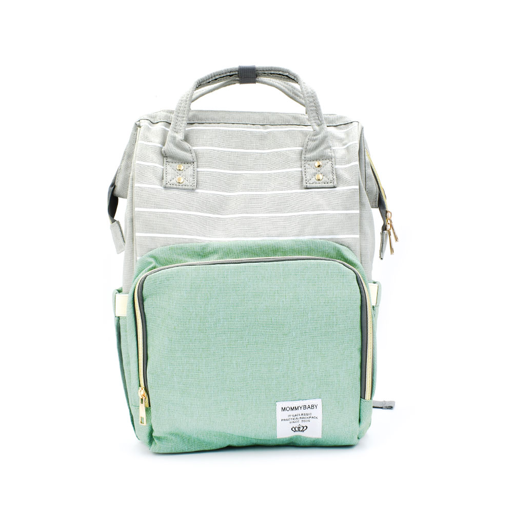 Τσάντα Μωρού Πλάτης Mommy Bag Backpack AiFi – Πράσινο, Γκρι Ριγέ