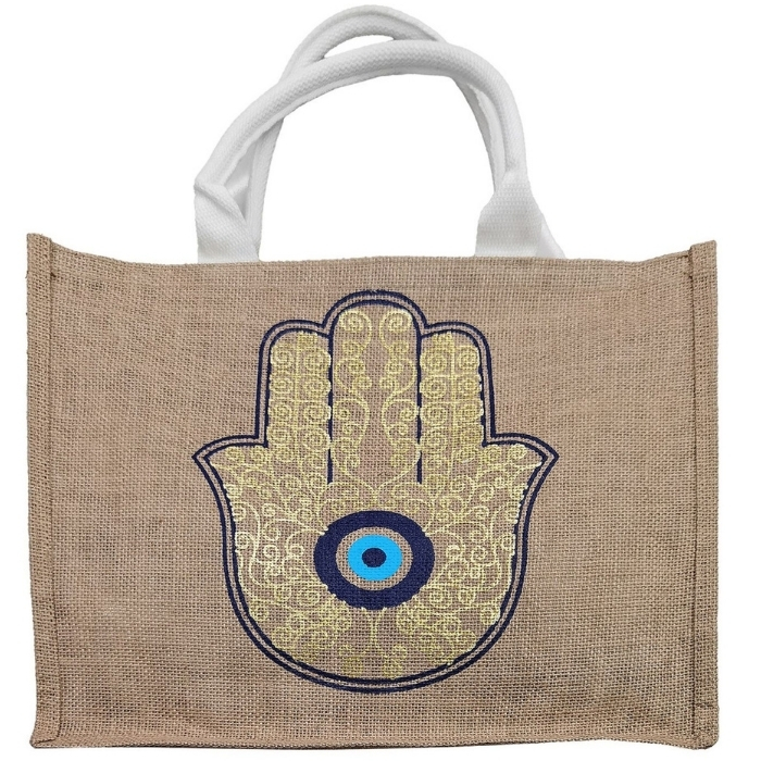 • Υλικά κατασκευής: 100% φυσική λινάτσα, υφασμάτινες ή σχοινένιες χειρολαβές