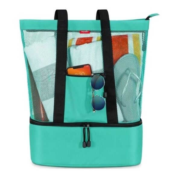 Τσάντα Τροφίμων Εκδρομής Χειρός με Ισοθερμική Θήκη Mesh Beach Tote Bag OEM - Γαλάζια