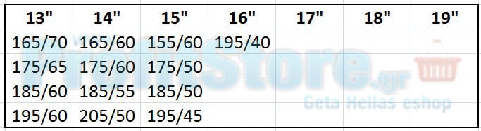 Διαστάσεις ελαστικών