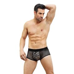 Για εσάς που βάζετε την άνεση πάνω από όλα, αλλά θέλετε τα εσώρουχά σας να έχουν στυλ και χαρακτήρα! Όμορφο και σέξι ανδρικό διχτυωτό διάφανο μποξέρ με λεοπάρ λεπτομέρεια.