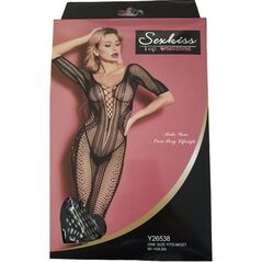 Ολόσωμο Σέξι Καλσόν See Through με Σχέδια και Μανίκια - Sexy Lingerie Bodystockings. Ελαστικό ONE SIZE. Σε μαύρο χρώμα.