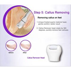Απομακρύνει μέσα σε λίγα λεπτά το σκληρό δέρμα, αφήνοντας τα πόδια σας τόσο όμορφα που θα θέλετε να τα δείχνετε παντού! Ειδική επικάλυψη κυλίνδρων για την αποτελεσματική απομάκρυνση των κάλων. Αφαιρεί κάλους και δεν τραυματίζει το δέρμα.