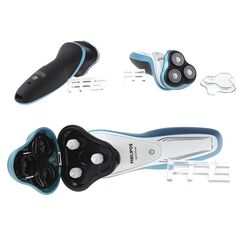 Eπαναφορτιζόμενη ξυριστική μηχανή με επαναστατικό σύστημα τριών κεφαλών 3D Floating - Flex and Pivot που αγκαλιάζουν το πρόσωπο για βαθύ και αποτελεσματικό ξύρισμα χωρίς ερεθισμούς. Υψηλής αντοχής πλέγμα αλουμινίου. Αφαιρούμενη και πλενόμενη κεφαλή.