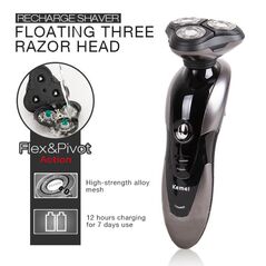 Επαναφορτιζόμενη Ξυριστική Μηχανή 3 Κεφαλών KEMEI KM-9006. Το ξύρισμα και το κούρεμα για τους άντρες είναι εξαιρετικά σημαντική υπόθεση. Είναι ένδειξη περιποίησης και προσωπικής φροντίδας, ενώ παράλληλα ο τρόπος ξυρίσματος και κουρέματος αποτελεί έκφραση του προσωπικού στυλ και της προσωπικότητας του καθενός