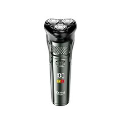 Επαναφορτιζόμενη ξυριστική μηχανή Kemei με 360° περιστρεφόμενες κεφαλές, οθόνη LED, αδιάβροχη σχεδίαση IPX7 και ισχύ 3W – ιδανική για καθημερινή ανδρική περιποίηση.