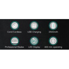 Με τρομερή ισχύ 10W, αυτο-ακονιζόμενες λεπίδες ακριβείας από ανοξείδωτο ατσάλι και 15 ταχύτητες, εγγυάται απίστευτα αποτελέσματα σε χρόνο ρεκόρ! Συνοδεύεται από 6 διαφορετικές χτένες - οδηγούς και είναι εξοπλισμένη με εντυπωσιακή ψηφιακή οθόνη!