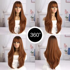 Αναβαθμίστε το στυλ σας με την Γυναικεία Περούκα με μακρύ μήκος και αφέλειες, το τέλειο αξεσουάρ για να μεταμορφώσετε την εμφάνισή σας χωρίς κόπο. Είναι κατασκευασμένη από συνθετικές ίνες υψηλής ποιότητας που δεν ξεχωρίζουν από τα πραγματικά σας μαλλιά.