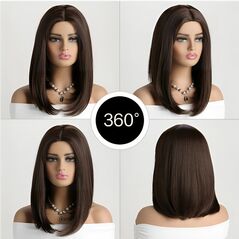 Αναβαθμίστε το στυλ σας με την γυναικεία περούκα σε σκούρο καφέ χρώμα με μακρύ καρέ, το τέλειο αξεσουάρ για να μεταμορφώσετε την εμφάνισή σας χωρίς κόπο. Είναι κατασκευασμένη από συνθετικές ίνες υψηλής ποιότητας που δεν ξεχωρίζουν από τα πραγματικά σας μαλλιά.