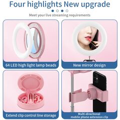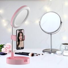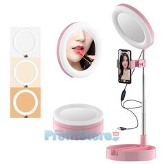 Εργαλείο ομορφιάς και ένα έξυπνο gadget 2 σε 1! Καθρέπτης για Make up αλλά και φωτογραφικό φωτιστικό δαχτυλίδι LED με βάση για το κινητό! Βαφτείτε επαγγελματικά, περιποιηθείτε το πρόσωπο σας. Μπορείτε να το χρησιμοποιήσετε και σαν δαχτυλίδι, για άψογο φωτισμό σε video, φωτογραφίες, live streaming, tik tok κλπ