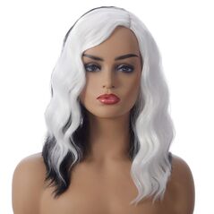 Αναβαθμίστε το στυλ σας με την Γυναικεία Περούκα σε χρώμα μαύρο και λευκό χρώμα με κυματιστό χτένισμα, κοντό κούρεμα και πλαϊνή χωρίστρα, το τέλειο αξεσουάρ για να μεταμορφώσετε την εμφάνισή σας χωρίς κόπο. Είναι κατασκευασμένη από συνθετικές ίνες υψηλής ποιότητας που δεν ξεχωρίζουν από τα πραγματικά σας μαλλ