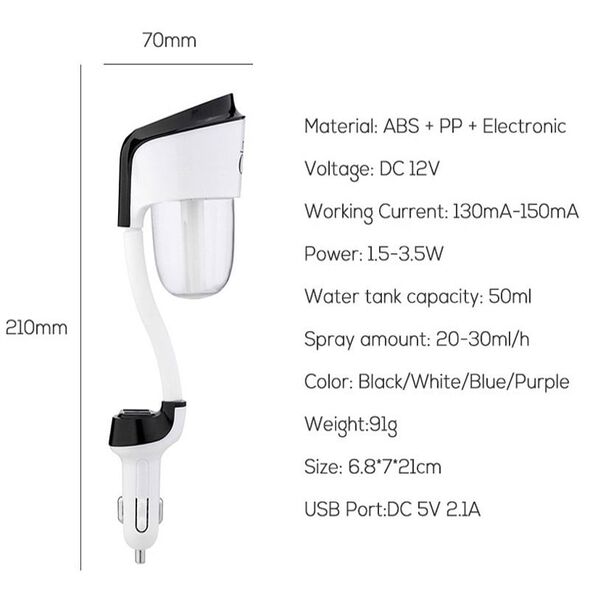 Υγραντήρας Υπερήχων Αυτοκινήτου με 2 Θύρες Usb NANUN II