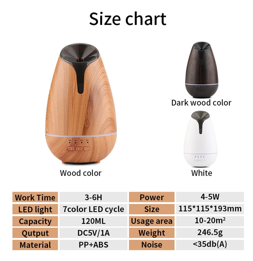 Υγραντήρας Υπερήχων & Συσκευή Αρωματοθεραπείας με Χρονοδιακόπτη & RGB LED Φωτισμό 120ml - Aroma Diffuser Χρώμα Φυσικό Ξύλου