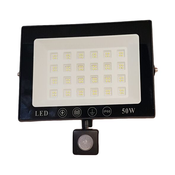Ultra Slim Προβολέας SMD LED 50w Ip66 με Ανιχνευτή Κίνησης Λευκό 6000K Υψηλής Φωτεινότητας και Χαμηλής Κατανάλωσης