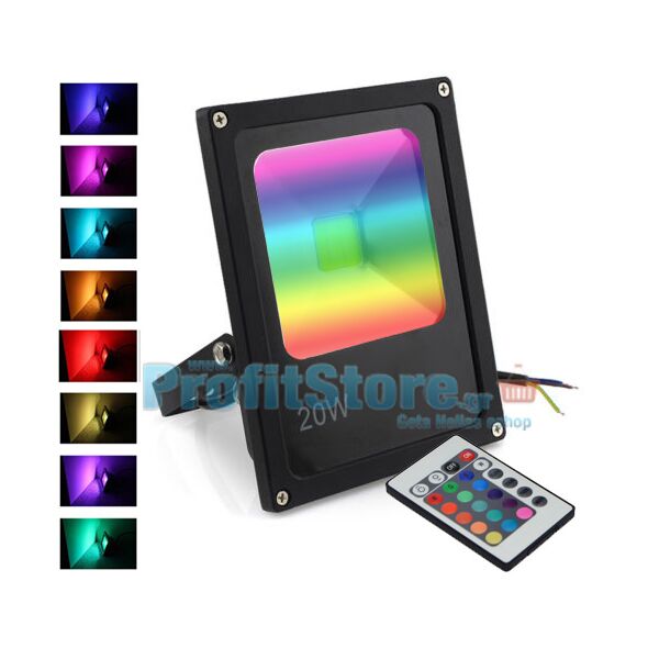 RGB Προβολέας 20Watt, για εξοικονόμηση ενέργειας και ατμοσφαιρικό φωτισμό μαζί με ασύρματο τηλεχειριστήριο για αυτόματη εναλλαγή άπειρων αποχρώσεων.