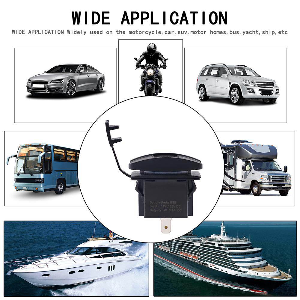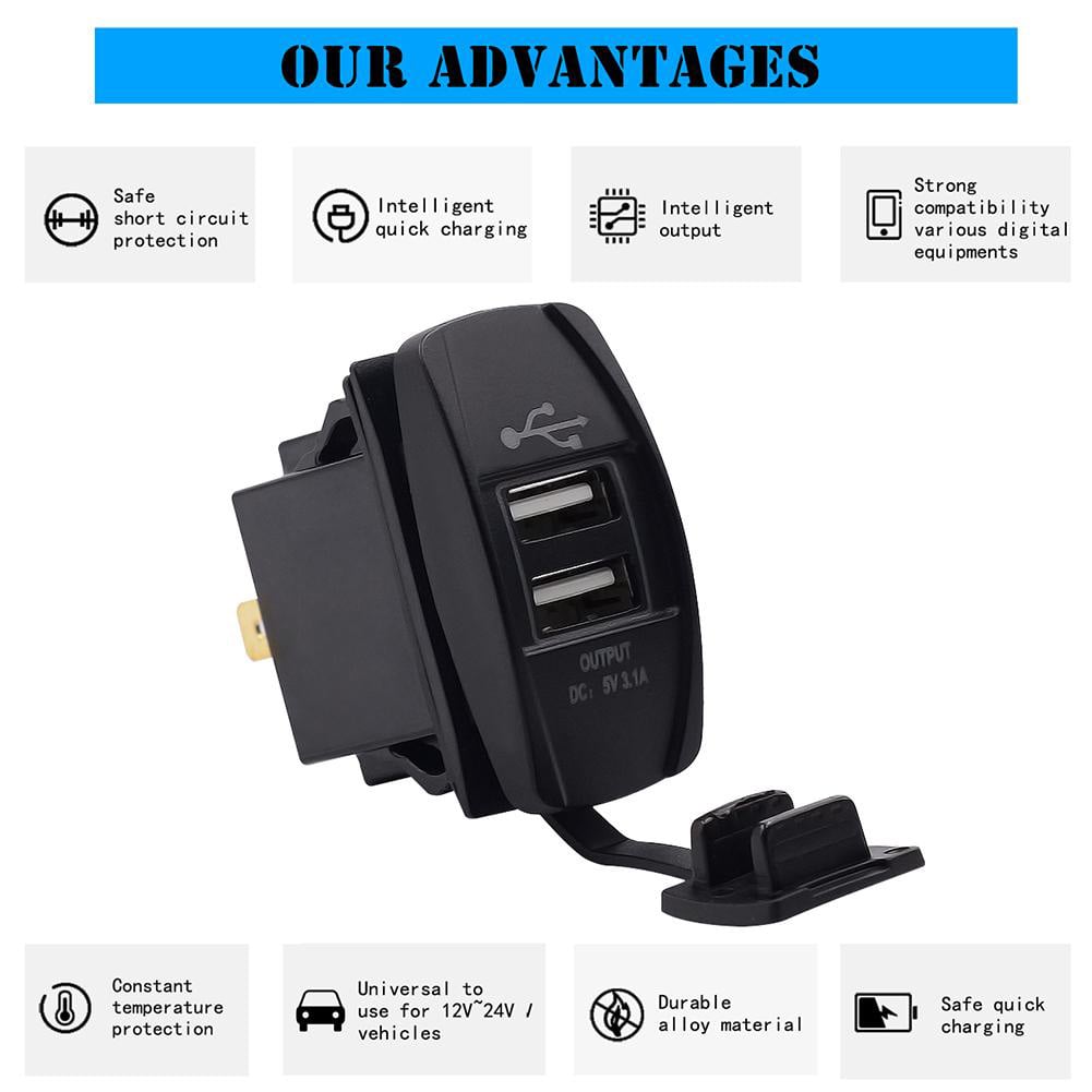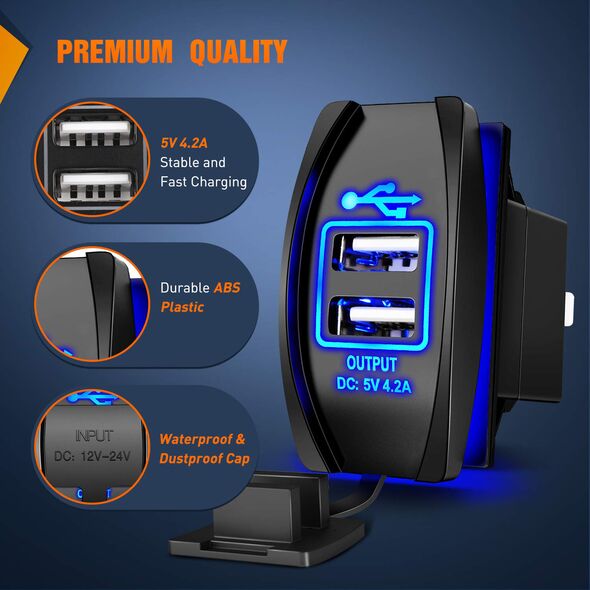 - 1 x Universal Αδιάβροχος Φορτιστής με 2 Εξόδους USB 5V 3.1A & Μπλε LED Φωτισμό