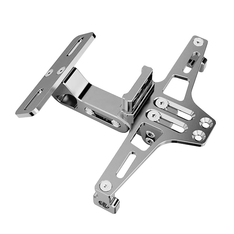 Universal Αναδιπλούμενη Βάση Πινακίδας Μηχανής με Υποδοχές για Φλας & Φωτάκι Πινακίδας Ασημί