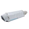 Πλήρες σετ εξάτμισης για μηχανές υψηλής ποιότητας, λευκού χρώματος με γκρι σχέδια. Ο προσαρμογέας συγκόλλησης από ανοξείδωτο ατσάλι επιτρέπει την τοποθέτηση σωλήνων 37mm - 53mm.