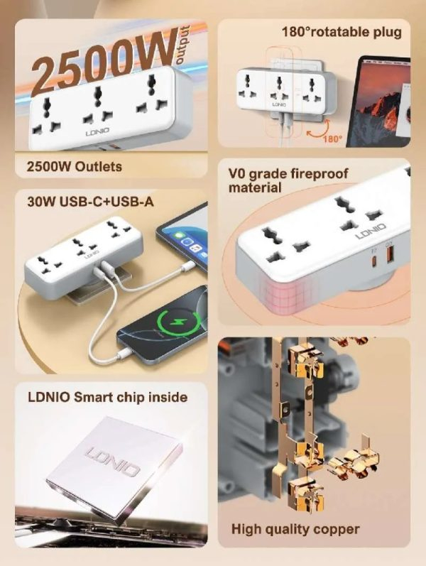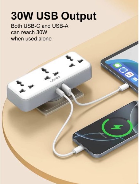 Universal Περιστρεφόμενο Πολύπριζο 3 Θέσεων και 2 Θύρες USB PD/QC 3.0 30W LDNIO Universal Περιστρεφόμενο Πολύπριζο 3 Θέσεων και 2 Θύρες USB PD/QC 3.0 30W LDNIO