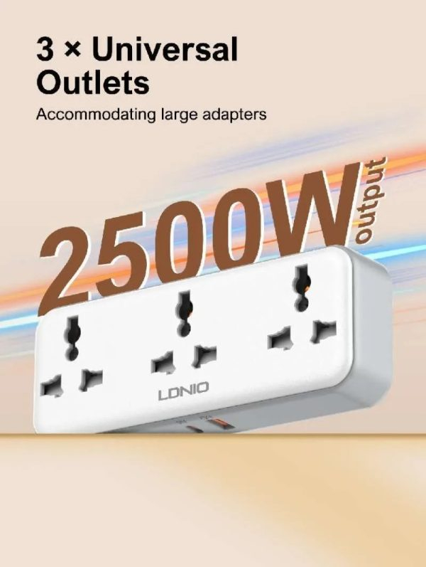 Universal Περιστρεφόμενο Πολύπριζο 3 Θέσεων και 2 Θύρες USB PD/QC 3.0 30W LDNIO
