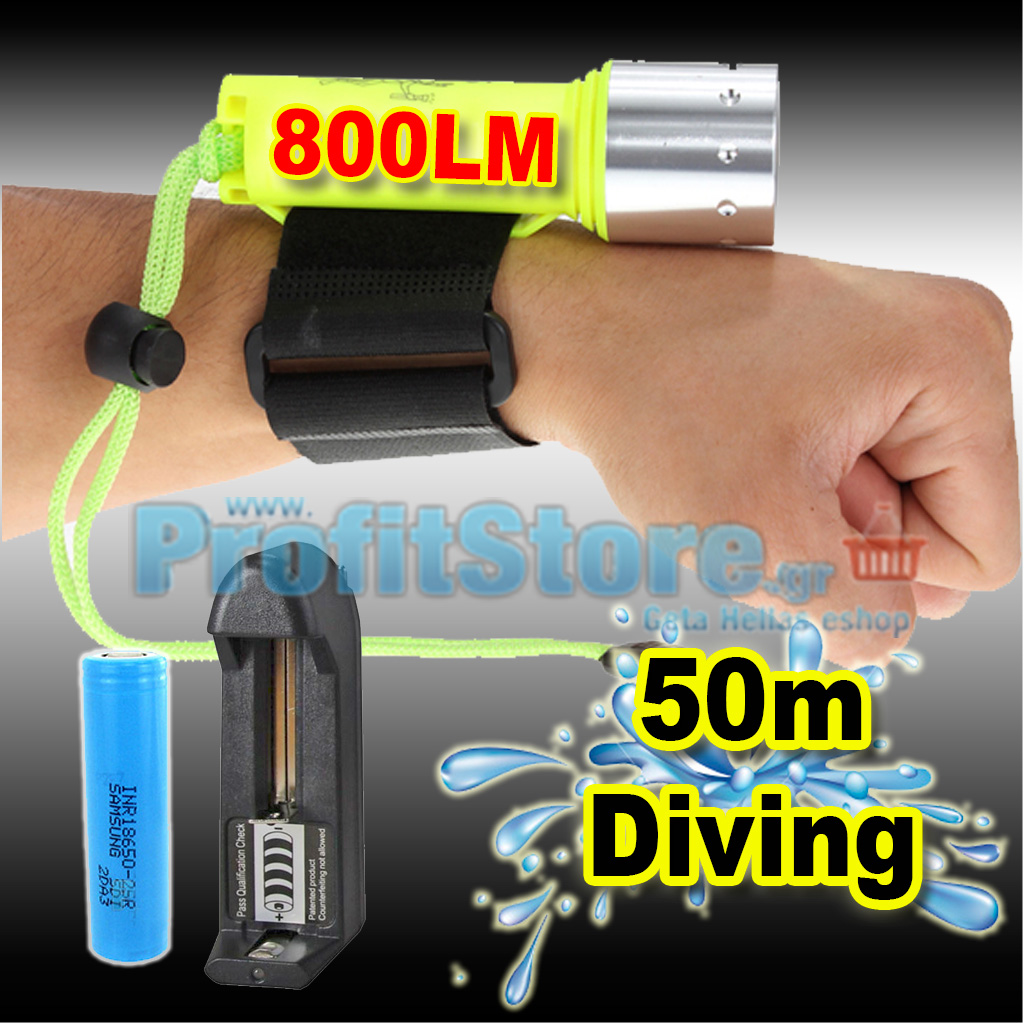 Υπερ Ελαφρύς Καταδυτικός Φακός Υψηλής φωτεινότητας CREE LED XM-L - 800 Lumens - 50m Waterproof - DIV800-OEM