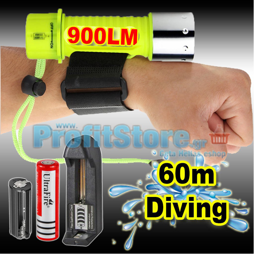 Υπερ Ελαφρύς Καταδυτικός Φακός Υψηλής φωτεινότητας 800-900lm CREE LED XM-L με Τριπλά O-Rings 60m Waterproof - DIV850-OEM