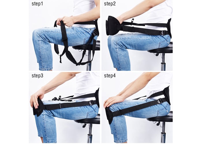 Ένα έξυπνο σύστημα που πιάνει όλη την μέση και "δένει" με φαρδιά ζώνη μπροστά στα γόνατα, κρατώντας ίσιο το σώμα.