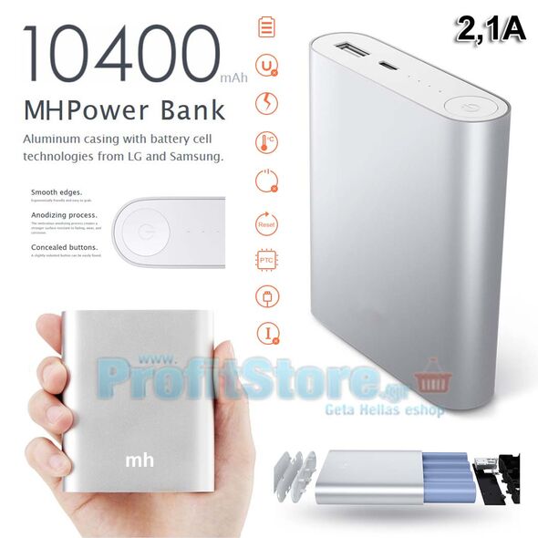 Υψηλής Απόδοσης & Ισχύος Power Bank 2,1A - Μπαταρία Φορτιστής 10.400mAh για Κινητά Τηλέφωνα, Gps, Κάμερες & Tablet MH 1040