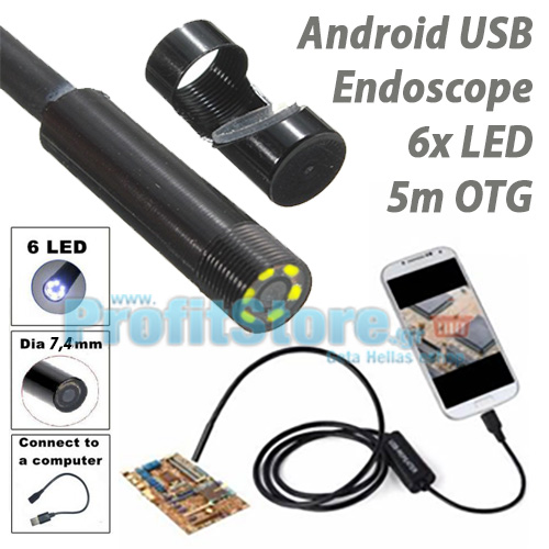 USB ενδοσκοπική αδιάβροχη κάμερα για συσκευές Android και Ηλεκτρονικούς Υπολογιστές. Καταγράφει video στο Android κινητό ή tablet σας, στο laptop ή τον H/Y σας, τραβάει και αποθηκεύει φωτογραφίες. Χρήσιμο εργαλείο για ιατρούς, ηλεκτρονικούς, ηλεκτρολόγους, τεχνίτες, μηχανικούς αυτοκινήτων κλπ.