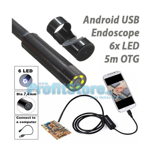 USB Android Ενδοσκοπική Αδιάβροχη Κάμερα Μικροσκόπιο με Φωτισμό 6x LED για Κινητά Τηλέφωνα και Tablet OTG 5m
