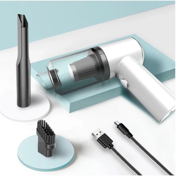 USB Φορητό Μίνι Ηλεκτρικό Σκουπάκι Αναρρόφησης Υγρών / Στερεών 120W με LED Φωτισμό Αυτοκινήτου Επαναφορτιζόμενο - Λευκό