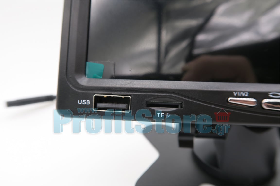 Έγχρωμο μεγάλο μόνιτορ TFT 7 ιντσών, είναι ιδανικό για το αυτοκίνητο, το σπίτι, το γραφείο κ.λ.π. Είναι από τα μοναδικά Monitor που διαθέτουν USB και Micro SD θύρες!