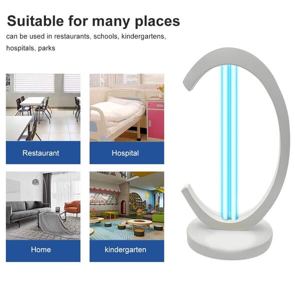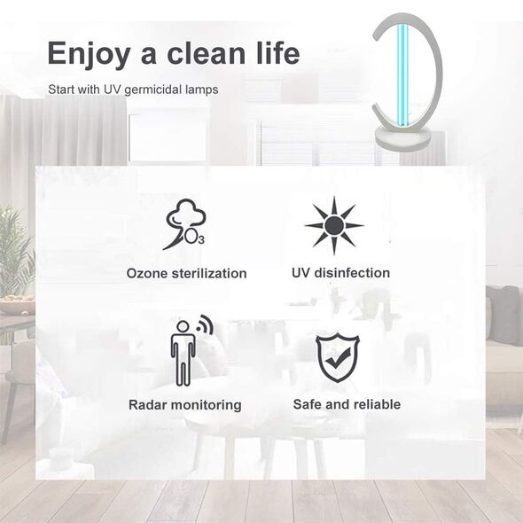 Πρωτοποριακή λάμπα αποστείρωσης του αέρα και του χώρου, με ασύρματο τηλεχειριστήριο! Ο λαμπτήρας UV σκοτώνει τους μικροοργανισμούς, μέσω της υπεριώδους ακτινοβολίας και της εκπομπής όζοντος, προκαλώντας αποδομή του DNA των μικροοργανισμών (βακτηρίδια, ιούς, και άλλα παθογόνα), επιτυγχάνοντας έτσι, την απολύμανση του αέρα.