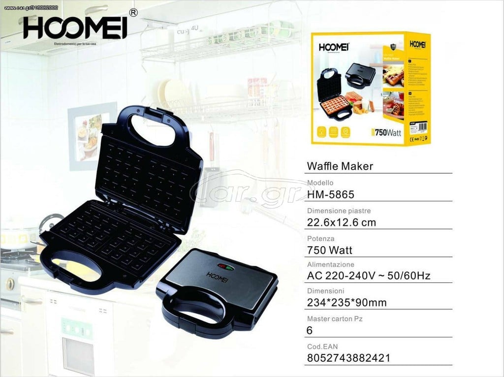 Η βαφλιέρα 2 θέσεων Hoomei® 750W είναι εύκολη στη χρήση και στο καθάρισμα καθώς και φορητή για την παίρνετε μαζί στις διακοπές σας !