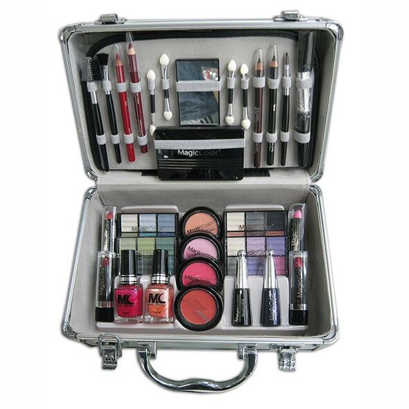 Βαλιτσάκι από αλουμίνιο που περιέχει 52 αξεσουάρ μακιγιάζ για τα μάτια, τα χείλη, το πρόσωπο και τα νύχια